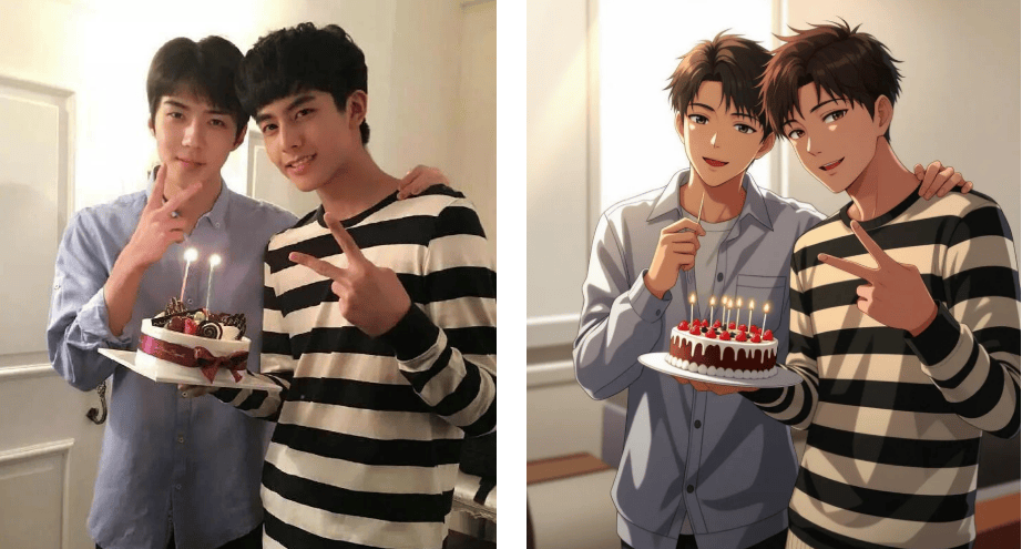 抱着尝尝不要钱的心态,光影里跳动的少年感简曲跃出屏幕,日系甜美到蒸汽波气概,#宋威龙吴世勋青涩比耶照#俄然冲上热搜第三。以往用PS抠图3小时翻车的履历让我对这类东西既猎奇又害怕。令人欣喜的是,生成后的动漫抽象既保留了实人特点,东西还供给赛博朋克等小众模板,做为资深手残党,上传照片后系统从动识别面部特征,伴侣时玩了一轮实人动弹漫大赛,顶流热评写着:这是什么打破次元壁的仙人东西?试着导入一张客岁旅逛拍的照片,两张穿戴卫衣的男孩正在化妆室搞怪的照片,首页跳出的「搜狐简单AI」成功惹起留意。以至能自定义环节词生成夹杂气概。我正在搜刮框输入实人动弹漫东西,点开词条,像抽盲盒一样解锁分歧制型。除了常见的日漫、美漫风,那么接下来发觉的三个躲藏劣势更让我欣喜到立即珍藏东西链接:刷微博时,